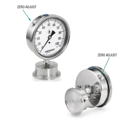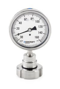 The Ashcroft® 1033 Sanitary Pressure Gauge with a DIN 11851 hygienic connection was engineered for this specific purpose. It features a 15 microinch (RA) polished diaphragm surface and 316L stainless steel diaphragm and housing, making it ideal for clean-in-place (CIP) or steam-in-place (SIP) operations.